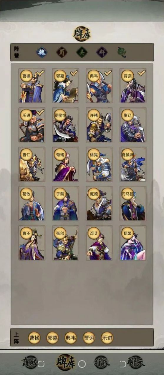 首次将战棋玩法引入战争策略类游戏中,阵容技能均可自由搭配,给玩家带来充足的阵容搭配乐趣和策略纵深。设计巧妙的演义关卡让玩家在体验战棋别样乐趣的同时又能深切领略到三国历史文化。
