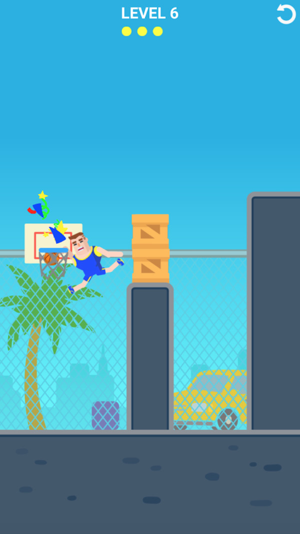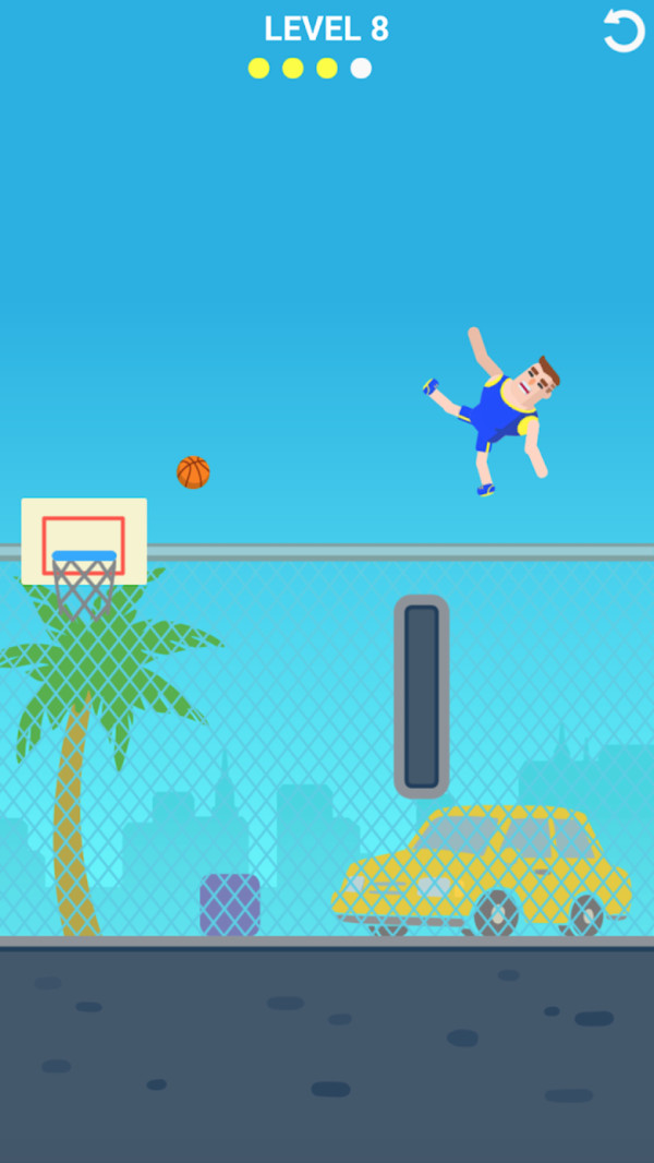 3、通过滑动点击来控制小人投篮,在规定的时间内完成球数。