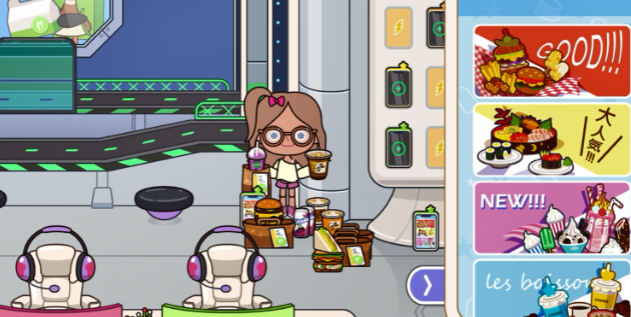 点击你需要的东西就可以啦!这里有汉堡、冰激凌、寿司还有甜品饮料可以点的;
