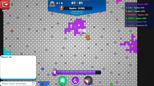 每个玩家都有自己的地盘,你需要找到更多的细胞让自己更加强大。