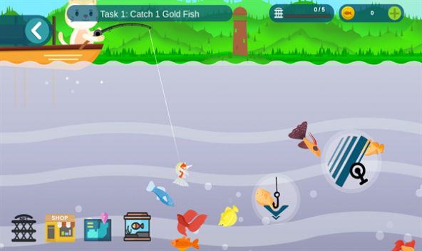 2、在钓到一定数量鱼儿或者通过任务完成后,您可以使用您获得的金币购买更好的钓鱼装备;
