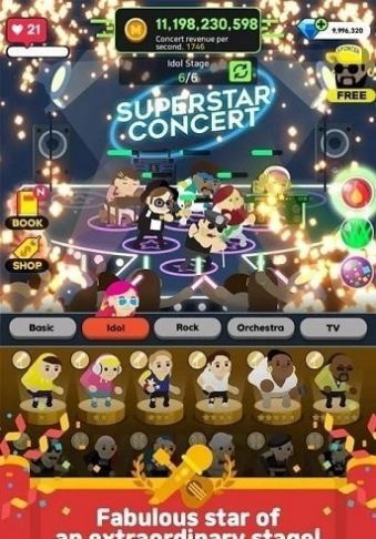 3. 只要把超级明星放在舞台上,就可以得到收益。