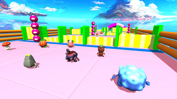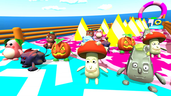 在一个超大的竞技场之中,存在着各种各样的陷阱设计,玩家们需要带领着自己的角色灵活的躲避各种危险并抵达终点。