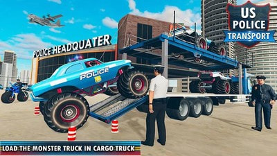 3、但它是一个真正的警车运输游戏的可能性。货物卡车司机和怪物卡车拖车装载在目的地警察怪物卡车,