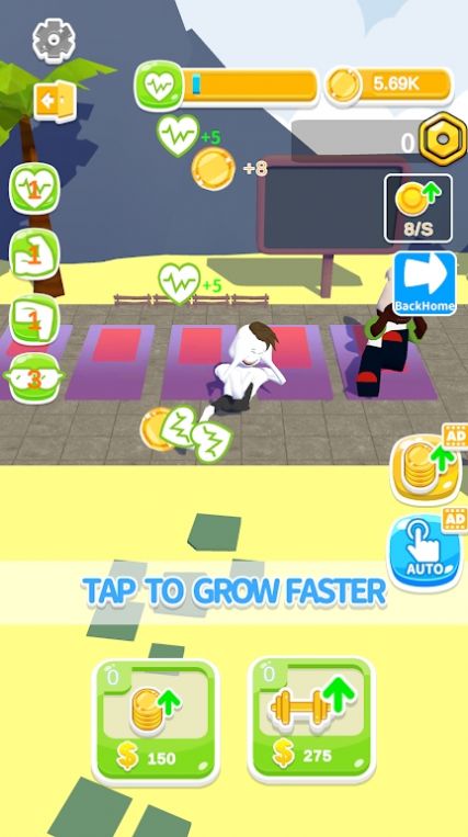 1、游戏中设置了多个有氧动作,玩家需要随着节奏跳动,进行快速燃脂健身;