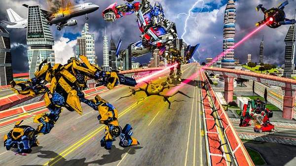 1、玩家在游戏中可以控制直升机变成机器人和来自外星的邪恶机器人进行战斗;