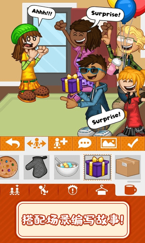 1、一个关于美食的故事,玩家自定义编辑角色、场景,将了一个有趣的事情。