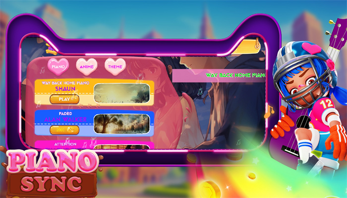 2、同步节奏玩法创新设计,要求玩家精准触按琴键以匹配滚动的音符流;