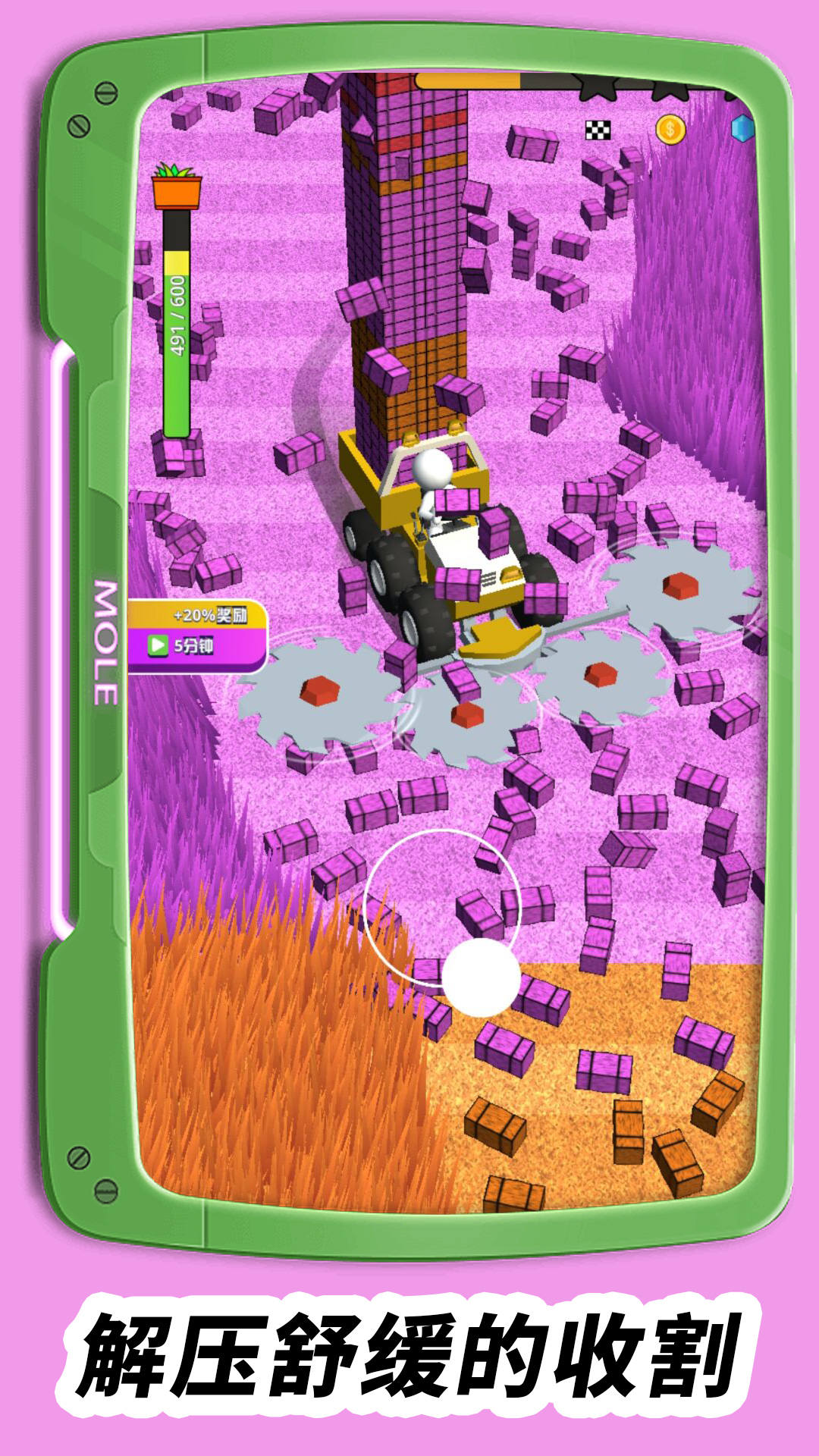 1、通过点击屏幕进行收割和整理花卉,获得游戏分数;