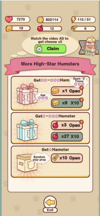 参加各类活动,赢取稀有仓鼠和奖励物品。