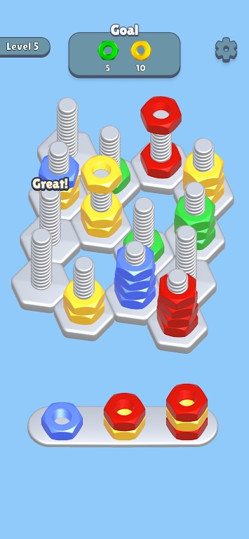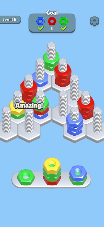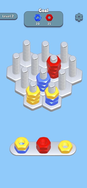 螺栓排序难题是一款益智游戏,游戏可以锻炼玩家的思维能力,玩家需要通过调整螺栓位置来完成任务,这里的排序任务难度都是不同的非常的有挑战性,带给玩家许多乐趣,丰富的关卡有着不同的游戏模式玩家可以感受到不同的操作过程,游戏可玩性很高,喜欢益智思维游戏的玩家赶紧来试试吧。