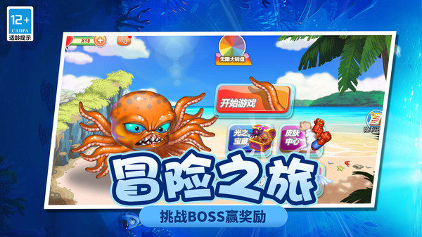 3、挑战各种任务,提升章鱼的实力,成为海底霸主。