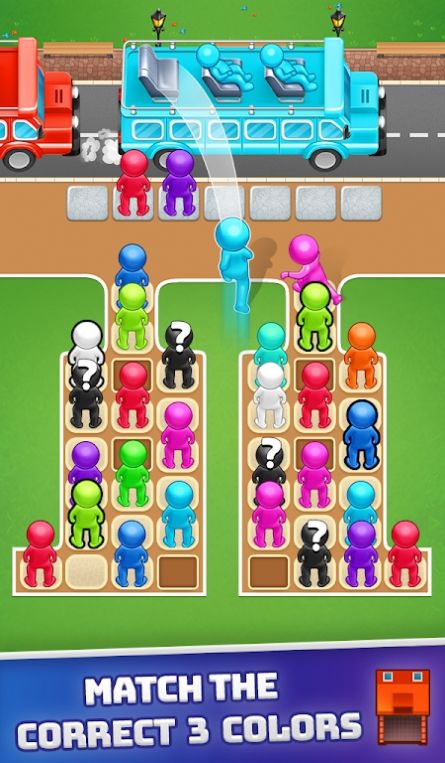 【橡皮人排序巴士车】这是一款玩起来十分不错的排序错过游戏,游戏中不仅分为了很多不同颜色的车子,玩家们需要按照颜色进行车辆分配的休闲益智类游戏,不同颜色的小人只能乘坐相同色彩的巴士,所以在车站候车期间我们要对现场的人员排队情况进行分辨与调整。