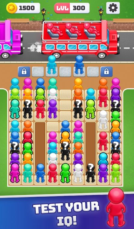 2、里面拥有很多不同颜色的车子都是装不同的人,按照顺序进行排序闯关吧!