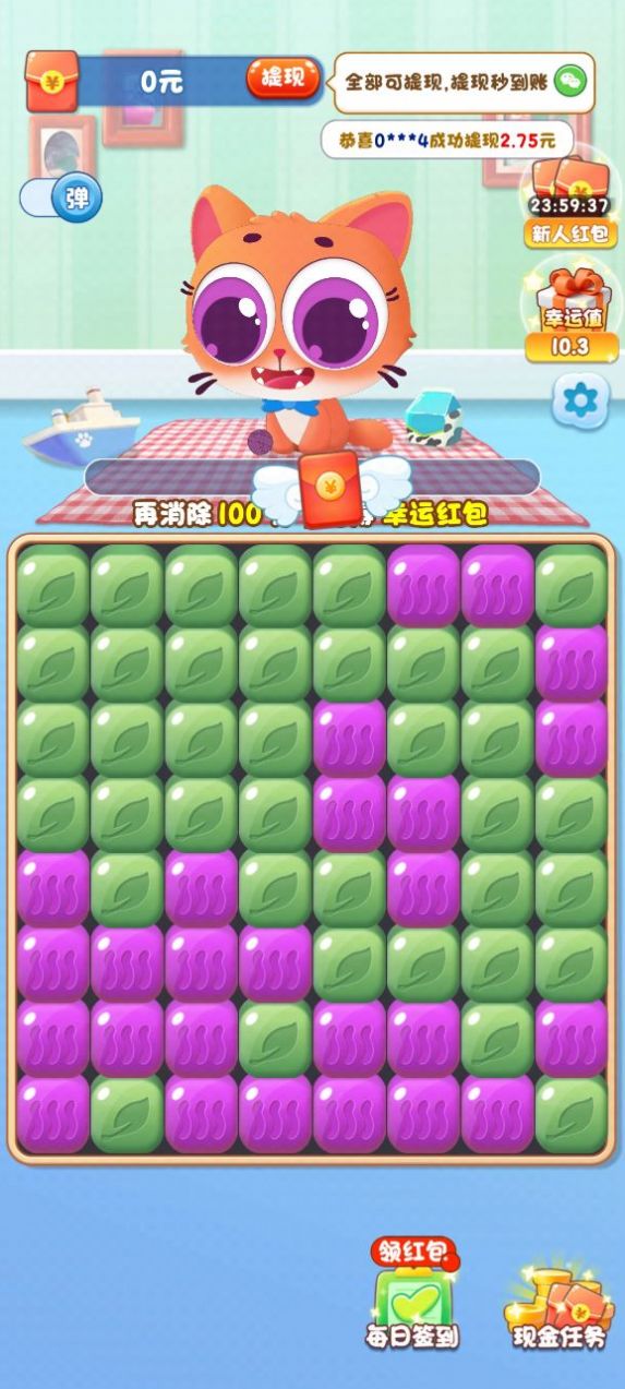 猫星人最强是一款非常趣味的手机消除闯关游戏,在这里你要帮助可爱的小猫咪闯关,游戏卡通的画面风格设计,指尖的游戏玩法适合多年龄段的玩家们进行体验,现在闯关还能够获得红包奖励,如果你也喜欢消除游戏那么不妨试试这款,还有各种的小猫咪等你前来体验。