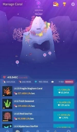 3、升级道具扩大养殖区域,越是庞大的鱼种越需要前往更深层次的海底世界进行生活。