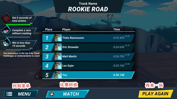 5、嘿,小编在这儿可摔了个实实在在的大跟头,那姿势简直就是狗啃泥,结果得了个倒数第一。要不咱看看刚刚的回放,或者干脆快速再来一局!