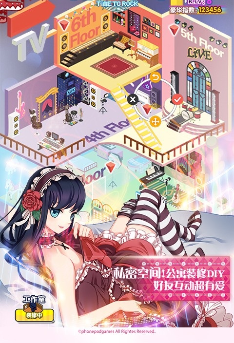 帮助少女换装,完成现场表演,不同主题的摇滚乐都有着全新的服饰解锁。