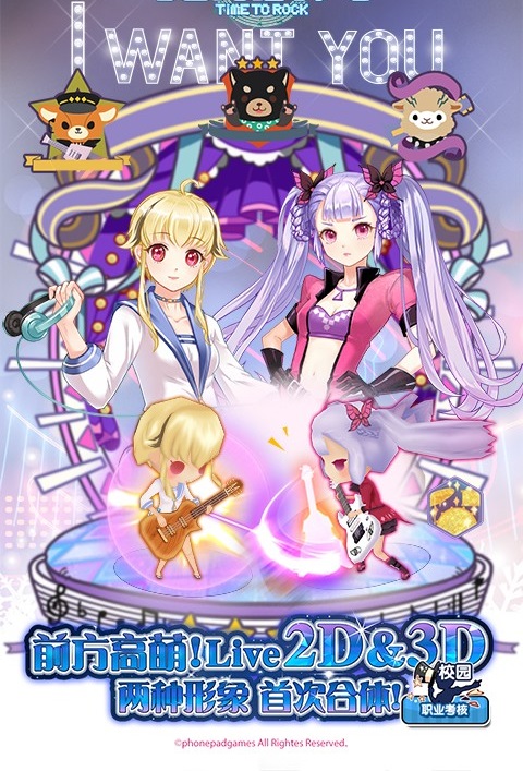 1、在次元世界开启音乐冒险,寻找最有音乐天赋的女孩,带她们空降舞台。