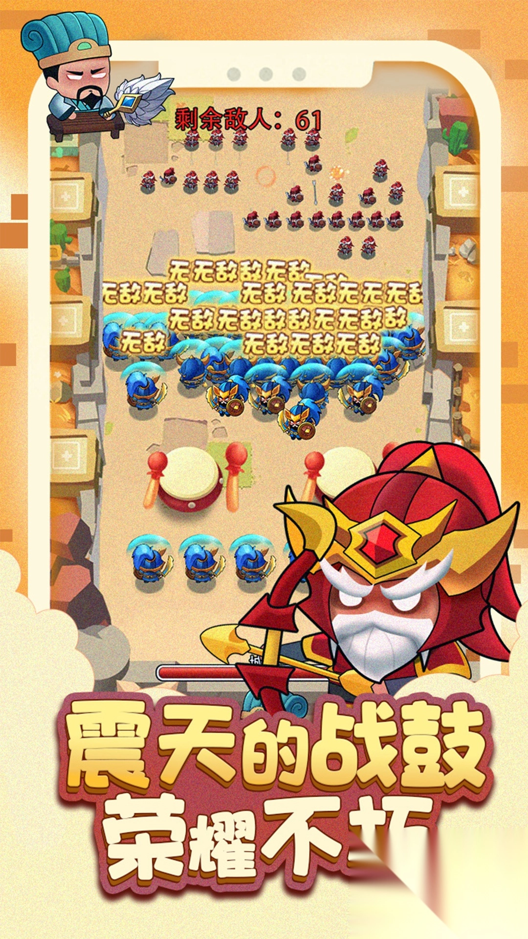 2、游戏玩法独具创新,融入武将、士兵、建筑等多元策略的升级与组合方式。其滑动召唤兵种的操作模式,既对玩家操作技巧有所考验,也要求玩家开动脑筋进行合理搭配。 3、这款游戏以卡通画风与Q版角色设计为显著特色,整个游戏过程充满趣味与挑战。