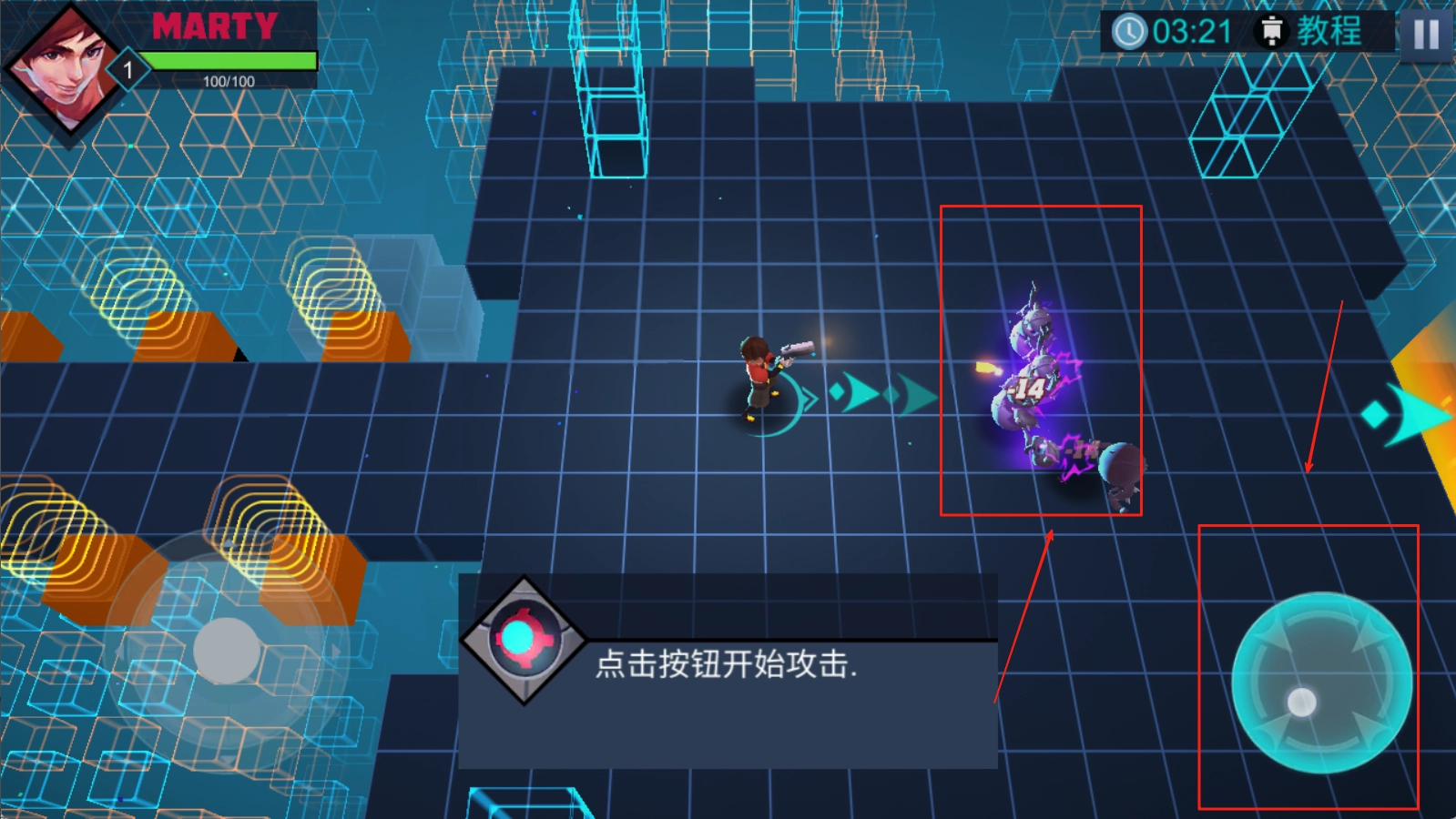 2、通过左侧操作来控制角色移动以闪避障碍,右侧则用于管理射击与技能释放,凭借这样的操作方式,玩家能够灵活应对各类敌人的出现,从而提高整体的胜率。