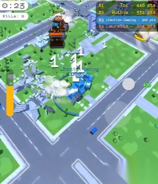 1、操控卡车收集地图上的资源,不断强化自身。 2、撞击其他车辆或建筑以获得积分并扩大体型。 3、灵活走位避开比你强大的对手,寻找反击机会。