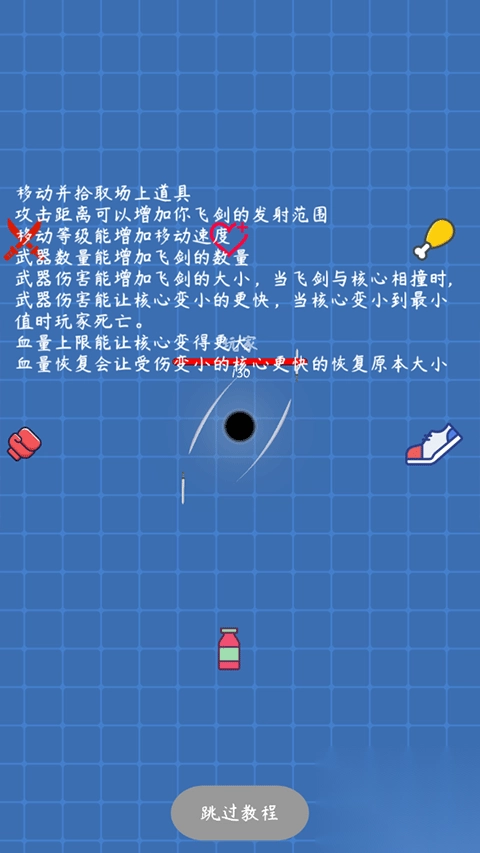 2、通过拾取不同的物品可以增加自己、攻击距离可以增加你飞剑的发射范围…