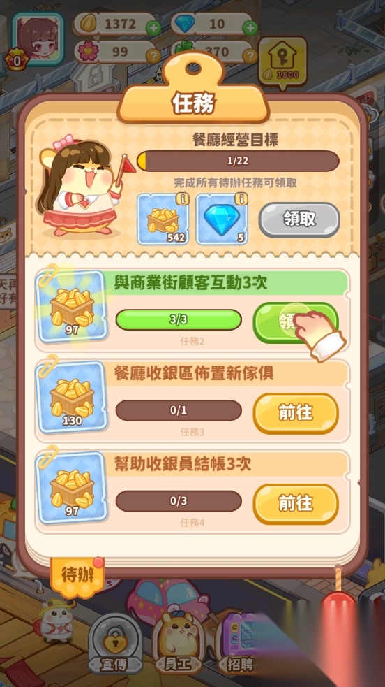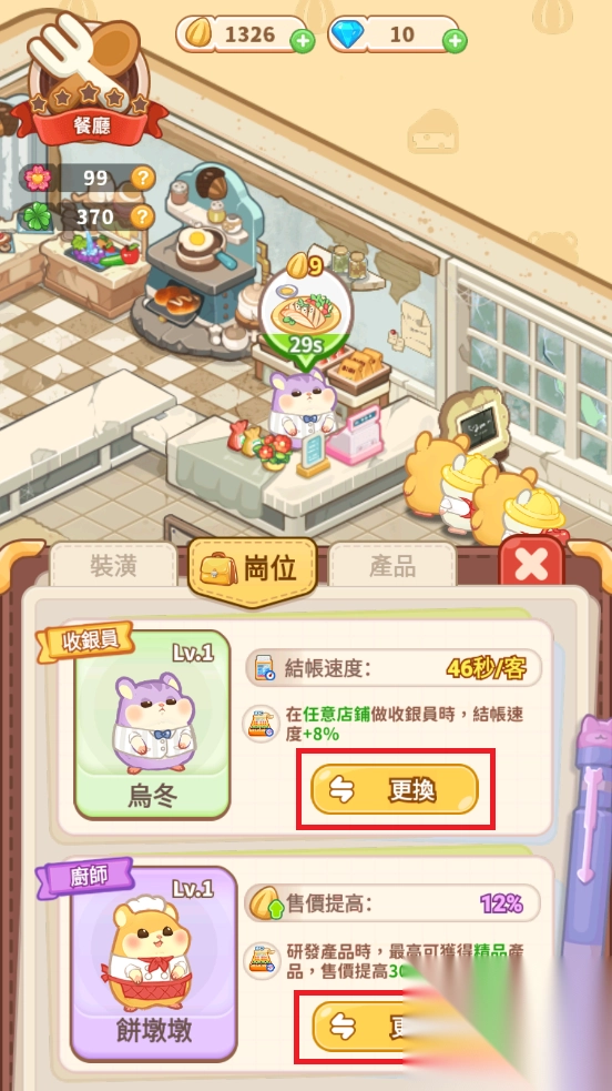 能够招募仓鼠作为员工并进行管理,为它们安排收银员、服务员等不同岗位,通过合理分配工作来提高店铺的运营效率。