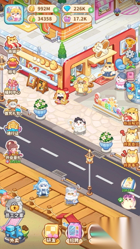 不仅如此,玩家还可以招募仓鼠员工,将它们分配到收银、服务等不同的工作岗位上,甚至组建气氛组,以此提升店铺的收益。另外,玩家还拥有对商业街布局进行自由规划的权利,可依据人流量灵活调整店铺位置,打造出一片繁华热闹的商业区。有兴趣的玩家可以在本站免费下载,尽情体验这款游戏的乐趣。【Q萌可爱画风】