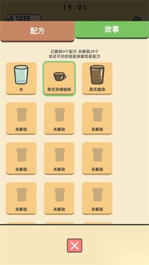 - 收集更多原料来制作新饮料!根据顾客的需求组合配料,为他们提供他们想要的饮料。例如,牛奶和咖啡豆混合可以制成拿铁,添加巧克力将使其成为一种新的咖啡饮料!