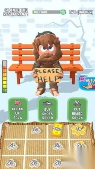 《乞丐讨生活模拟器》是一款极具真实感与挑战性的模拟游戏。在游戏里,玩家将化身为乞丐,开启一段与众不同的生存之旅。你需要努力完成各种任务来赚取金钱,进而提升角色的生活水平,亲身体验从艰难维持生计到逐步改善生活的全过程。游戏中有着丰富多样的道具与装备供你挑选,你能够自由搭配出最适宜的生存组合。与此同时,玩家还可以与众多NPC进行互动,体验真实的社交场景,在重重挑战中品味生活的酸甜苦辣。
