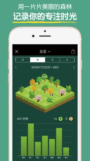 4、以森林记录每一天的专注情形,看看昨天您多麽努力,而今天是否有所进步。