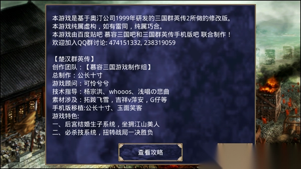 1、楚汉群英传有自制的MOD,游戏自带存档。