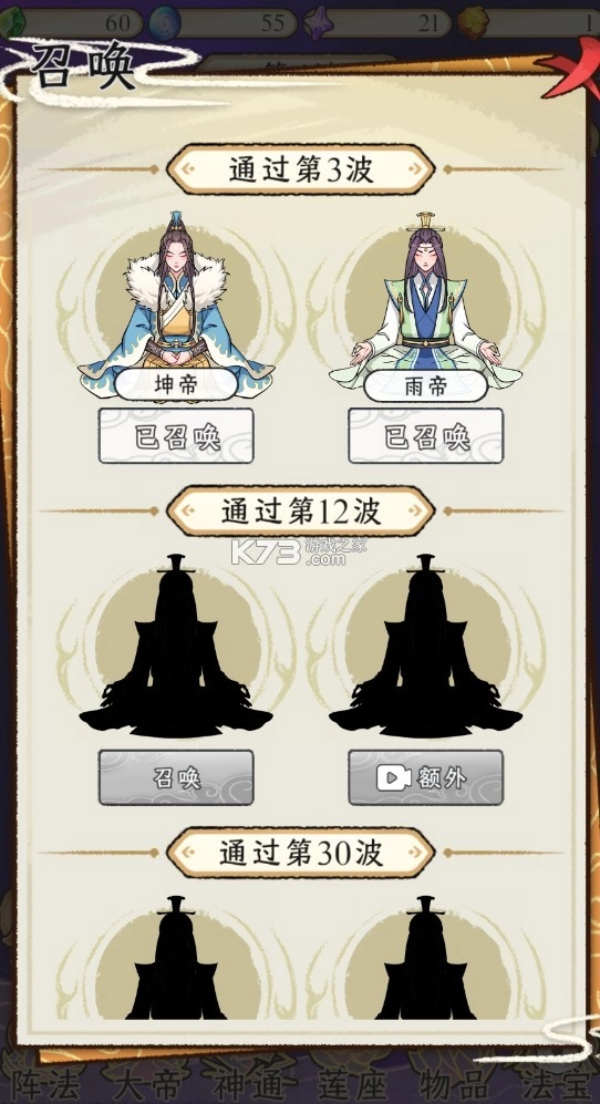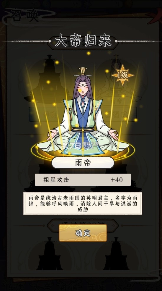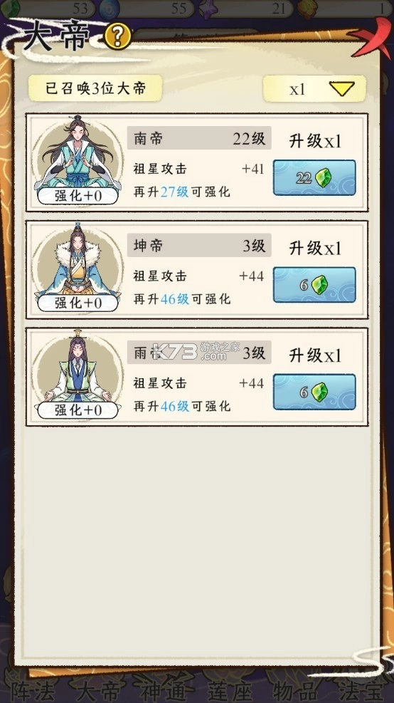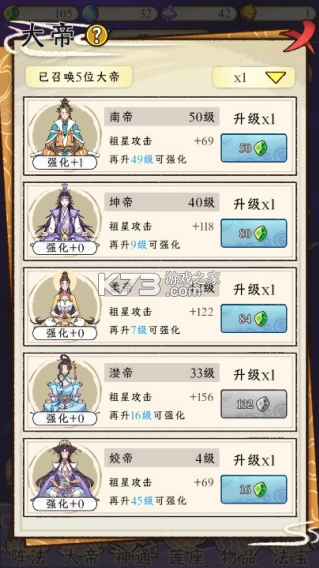 3、消耗一定材料可升级/强化大帝,等级越高,大帝效果越高;