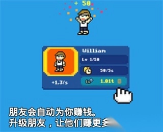 4、朋友会自动为你赚钱。升级朋友,让他们赚更多钱。