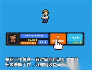 3、兼职工作将在一段时间后自动为你赚钱。升级兼职工作,以缩短收益周期。