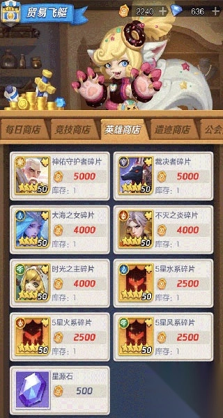 游戏里的贸易飞艇堪称获取资源的不二之选,突破石、高级招募券、冒险者积分等各类资源,一应俱全!而且,我们心心念念的英雄碎片同样能在此处获得!