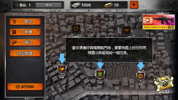 1、僵尸战争的玩法简单,操作易上手,只需要击杀所有攻击你的僵尸即可