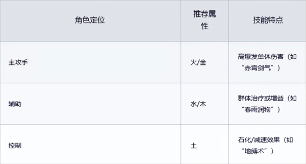 战斗采用五行元素相克机制(金→木→土→水→火→金),队伍需搭配不同属性角色。战斗中可通过连携技触发额外效果,例如火属性角色攻击后,水属性角色释放技能可触发“蒸汽灼烧”持续伤害。