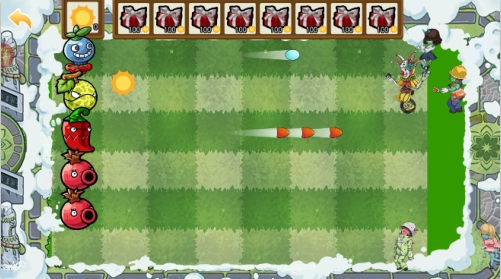 3、充分发挥植物的优势,建立稳固的防线,抵御僵尸的入侵!