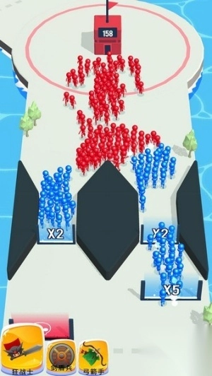 1. 游戏开始时,操控火柴人队伍向前行进,当遇到光幕时,主动撞上去从而复制单位,一步步扩充军团的规模,增强整体的战斗能力。