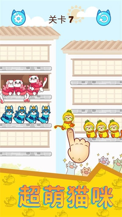 1、萌趣猫咪角色:每只小猫咪都有独特的外观和表情,排序成功后会有可爱的互动动画,增添游戏的趣味性。