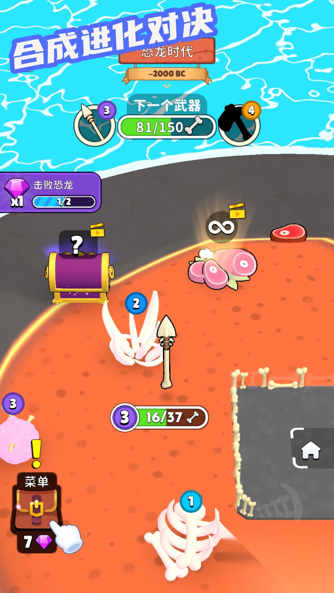 2、独特的工具进化系统,从原始石器到未来高科技,展现工具发展历程,充满策略性。