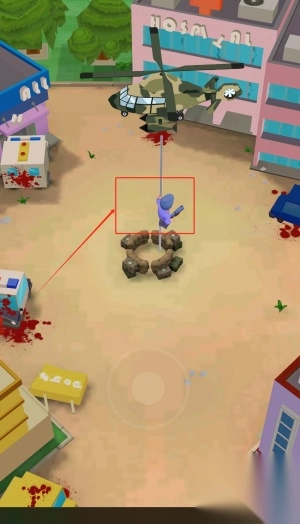 1. 在战场地图上,操控身着蓝衣的角色,使其移动到红框所标记的石堆掩体后方。在此过程中,时刻留意头顶直升机的动向,据此准备展开进攻或者躲避敌方的火力攻击。