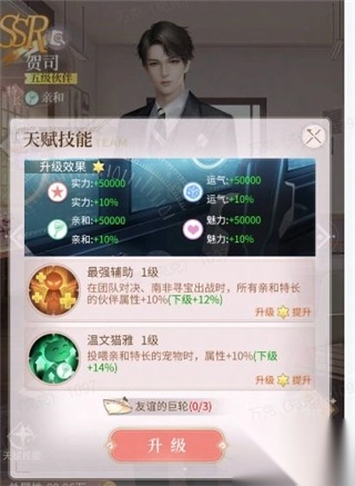 2、除了蓝颜的羁绊和亲密外,部分蓝颜卡牌也会对宠物的属性有提升。