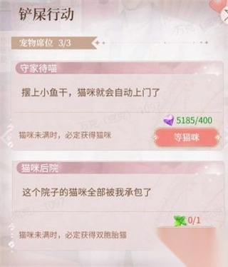 5、除了单身贵喵,在蓝颜偶遇过程中也会概率出现获得双胞胎猫咪的情况,但是在蓝颜的铲屎行动中,花费猫薄荷就可以直接获得双胞胎猫咪哦(猫薄荷通过推送礼包获取)另外在铲屎行动中也可以直接使用钻石选择固定的蓝颜获取猫咪。(每次花费钻石后,下一次会增加相应的钻石哦)