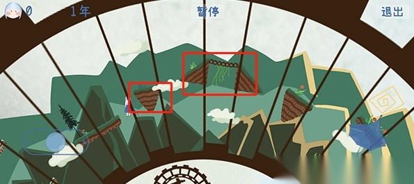 2、游戏的世界是围绕着一个时钟旋转的,我们需要操作角色寻找不同的地形作为落脚点。