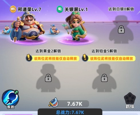 由于前期可使用的武将较少,因此尽量以能够凑成羁绊为主。
