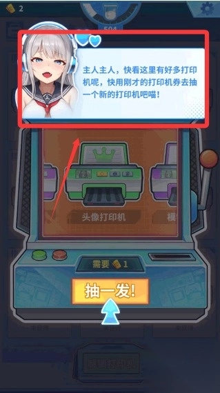 3、这个时候系统提示我们去解锁全新的打印机,这个时候就需要我们拼手气抽奖了。