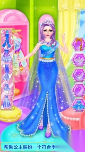 2、游戏提供50多套精美服装,玩家可为公主更换冬季裘皮礼服或夏季薄纱裙装,轻松打造百变造型效果。